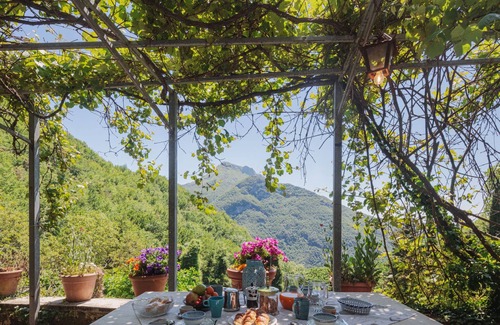 3-room semi-detached house 60 m2 on 2 levels. Renovated, rustic and cosy furnishings: living/sleeping room with 1 sleeping facility, dining table and satellite TV. Kitchen (oven, dishwasher, 4 gas rings, toaster, kettle, electric coffee machine) with open-hearth fireplace (only for decoration), dining table. Exit to the terrace. Upper floor: 1 room with 1 french bed (130 cm). 1 room with 2 beds. Shower/WC. Gas heating (extra). Wooden floors. Terrace. Terrace furniture, barbecue (portable), deck chairs (3), box-room. Beautiful view of the mountains, the valley, the forest and Riviera della Versilia. Facilities: washing machine, iron, baby cot for up to 2 year olds. Internet (WiFi, free). Parking (2 cars) at the house. Please note: non-smokers only. Maximum 2 pets/ dogs allowed. Private entrance. IT046005C2VGGWQM9D