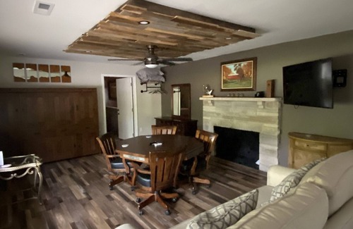 Located at the entrance to the Cataract Falls State Park Recreation area. This is the largest suite in the lodge. Sleeps 6-8 guests comfortably but with two queen size sleeper sofa’s it can accommodate up to 12 guests. This suite has two separate outdoor patios each with its own Pavilion. Need more space, inquire about renting the entire lodge. Perfect for family gatherings, business retreats, weddings and events.