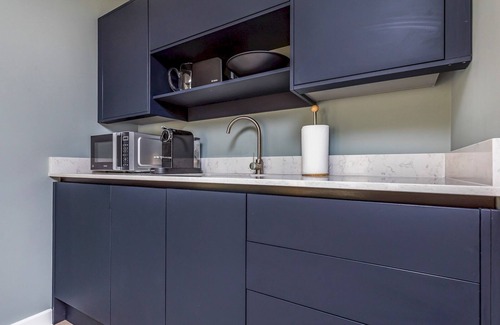 This beautifully decorated annexe offers a large open plan living space overlooking the pretty and well-tended shared garden. Large bifold doors open up to the patio, perfect for enjoying an alfresco meal in the warmer months on the patio dining set. The comfortable king sized bed will be made up for your arrival with crisp white hotel style linen, and there is plenty of additional seating with a two seater sofa. There is also a large 80" Smart TV (you will need to use your own log in details for the TV apps).
