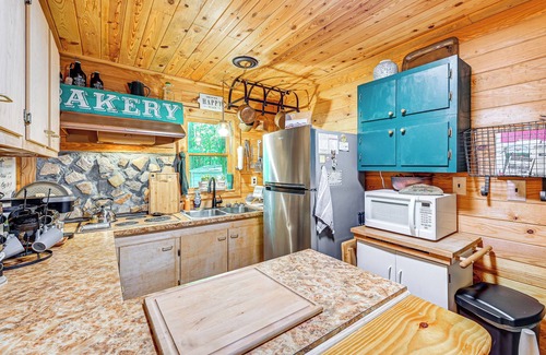 Book your next Blue Ridge Mountains retreat at this 1-bed, 1.5-bath Roaring Gap vacation rental! With proximity to outdoor leisure, popular attractions, and more, 'Hallelujah Hideaway' makes the perfect base for nature enthusiasts and fun-loving families or groups of friends. Take a hike through Stone Mountain State Park, tee off at High Meadows Golf and Country Club, or enjoy a tasting at Roaring River Vineyards! Back home, roast s’mores over the fire pit, then head inside for a movie night.