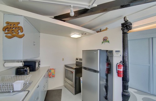 KITCHEN: Well-equipped, coffee maker, dishware, flatware, counter w/ seating, blender, cooking spices
