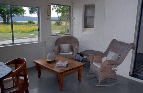Large dining room seats 10 overlooking beach. Large lounge room with 2 x 3 seater lounges and 1 4 seater lounge beach views, with big log fire. TV/Apple tv.