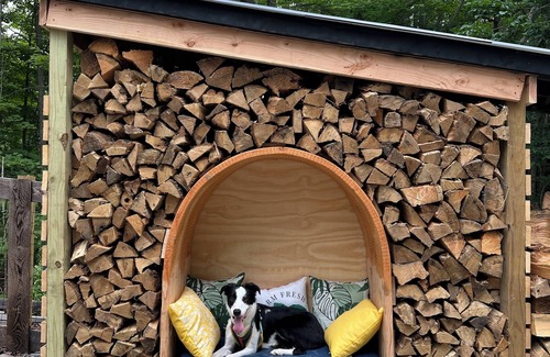 Pawfect Dog Park: Private 1,000 sq. ft. fenced-in dog park with soft turf, agility features, picnic table with umbrella, water bowls, waste station, toys, and even a stick library for fetch fanatics.
