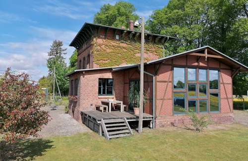 The building was built in 1895 in Prussian brick architecture and is now a listed building. In 2005 it was renovated, preserving the original style elements from scratch. It has, among other things still flooring, the original ticket office, old wooden doors and. The covered with small patches former platform now invites for relaxing barbecues with family and friends. Railways no longer hold here for a long time. Only every few months it happens that a train in a very slow trip past rumbles. You can hear him coming from afar and then it is not possible to overlook him. For children this is more exciting than dangerous.