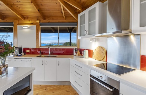 Peace & Plenty consists of two self-contained guest wings, each with its own fully renovated bathroom and each with panoramic views over Great Oyster Bay. The central living/dining/kitchen area comes with bespoke Tasmanian furniture and quality furnishings, a state-of-the-art kitchen and offers sensational views over the Bay and Freycinet Peninsula.
