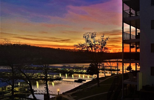2 bed 2 bath condo comes furnished with everything you need to get away from it all and enjoy a peaceful stay at Lake of the Ozarks. High-end appliances and furnishings, towels, linens, cookware, just about everything you can think of is included in this condo. The lakeside covered deck comes with outdoor seating, as well walks down to the ground level. Across the lake is a state park and the views are gorgeous. An exercise room, a pool, and playground all are included. Sorry our boat slip is unavailable for guests.