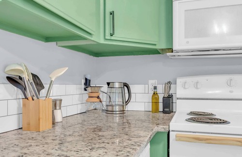 This cozy 2BR home, which sleeps up to 6, is ideal for longer stays. Featuring a fully stocked kitchen and bathroom, it’s set in a peaceful neighborhood, just steps from Shoeless Joe Jackson Park. A short drive gets you to downtown Greenville. Whether you're in town for business or leisure, this home is perfectly located for all your needs.