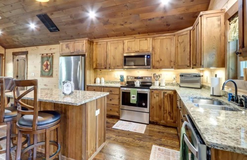 Buffalo Trace is brand new and features beautiful cabin themed furniture, new hot tub and fully stocked kitchen. We are perfectly located a short 8-minute drive to downtown Copperhill and 10 minutes to the Ocoee River. We are also very close to Blue Ridge, GA and Murphy, NC. The cabin is open concept style and is perfect for hosting a get together. The living room features a beautiful rock fireplace, two large recliners, two large reclining chair and a half's and a smart TV that has both premium cable and streaming apps. The dining room features a very large dining room table made from rustic wood and real tree branches. It can comfortably seat 8. There is also a large bar in the kitchen with granite top that has two barstools. The large kitchen has lots of prep space and is fully stocked with everything you could ever need. Finally, there is a huge porch in the rear with relaxing chairs and a brand-new hot tub. We also own a 4b/3ba next door that can be rented together - VRBO2807938.