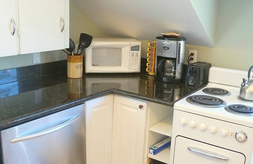 The studio feels roomy and includes a 50" smart TV (Netflix, Amazon Prime, etc. no TV or cable subscription), electric fireplace, and environmentally friendly heat pump with Air Conditioning. The kitchen is well-equipped with all the cooking essentials you need if you choose to stay in for a meal. We have a comfy queen bed with a high-end Beautyrest Black mattress. There is also a full fold out couch (please note that the fold out couch would be more comfortable sleeping smaller people, 5' 8" or less) and a queen air mattress. Let us know if you need a pack n play or blow up toddler bed. We have three kids so if you need something for your kids, just let us know.