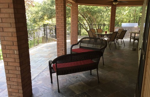 Seeking restful peace and tranquility? Start your day eating breakfast and drinking coffee on the huge covered patio that overlooks the lake, sit in the abundance of shade offered by almost 90 mature oak trees, sit in a hammock and listen to the waves lap the shoreline, or lounge on the deck of the pier and boathouse.