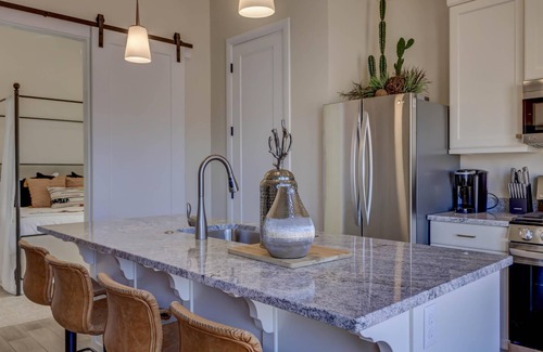 This charming Casita is perfect space for a couple. The name perfectly describes this homes décor! Sunsets and palms give the perfect feel for this beautiful St George getaway. The living area and kitchen is one open space. The kitchen is fully equipped and has a gorgeous island that provides seating for four. The living area is a perfect setting for relaxing and enjoying one another. Enjoy your favorite program on the flat screen Smart TV. The bedroom has a king size bed and a flat screen TV. You will notice the sunset décor continues throughout this home. The bathroom is separate and includes a washer/dryer unit.