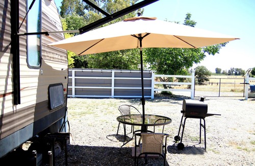 You don’t pay a cleaning fee here! We offer the best deal In town. Want to relax in this cute RV? Only guests will have access to the parking area and the privacy gate with a remote control. Beautiful County setting,just about 3 miles from the town of corning, 6 miles to the casino, 1 mile away from the Sacramento River, the famous Woodson bridge park. The morning walks out there are beautiful . lowest price you will find. Super clean! 2 MRCOOL AC, and heat. The place Stays super cold in the summer and super warm in the Winter. Come and stay. You will not regret it