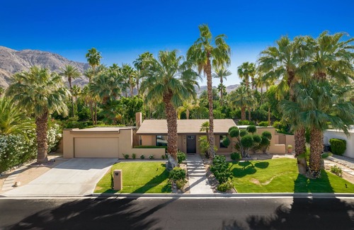 Sleep in the desert with a million stars all around. When you wake you will enjoy the peace and tranquility of your private desert paradise nestled at the top of the classic mid-century neighborhood, Magnesia Falls Cove. The lush green landscaping, large yard and beautiful saltwater pool back up to acres of mountain vistas over a neighboring private golf course. Short walk to popular hiking trails, restaurants and shopping.