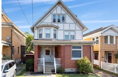 This charming 1907 home on a quiet dead end street was converted years ago into three separate units. This unit is on the second story and features a comfortable queen sized bedroom and a full sized bed in the second bedroom and one bright, newly tiled bathroom. The warm living room welcomes you in with comfy sofa, cozy chairs and smart tv. Off the living room is the adorable eat in kitchen equipped with all the essentials including a drip coffee maker. This unit is a perfect getaway when you return from all the sights Pittsburgh has to offer! It blends the peaceful comfort of home while being close to downtown, stadiums and casino! One off street parking space and shared laundry are included!