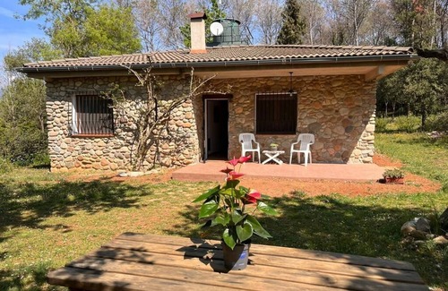 Cottage to rent during weekends, weeks or months. Peaceful place, without noise and neighbours. A cottage, with 2 double bedrooms, 1 bathroom with shower, WC, washbasin, 1 bathroom with WC and washbasin, living room with fireplace, dining room and kitchen. The kitchen is fully equipped with oven and fridge and freezer- The electricity is generated by solar panels. Swimming pool of 6 metres by 3 metres. A peaceful place in 4 hectares of trees and meadows. 2 kilometres from the village of Crespià, 32 km from the Costa Brava, 15 km from Banyoles with its popular lake for swimming . 13 km from the medieval village of Besalú with its famous bridge and 40 km from Girona the capital of the province with a beautiful cathedral, Romanic churches and the old Jewish quarter within the walls of the old city.
