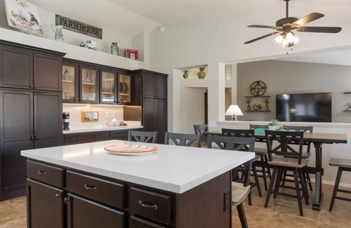 This property may require an Arizona lease to be signed for any stays of 30 days or more. Typically, the terms are no different from what you agree to on this site and this is more a requirement by the state of Arizona and/or this community. This home also has a utility cap that applies for stays of 30 days or more. The homeowner pays all home utilities up to a utility cap of $400, the tenant pays any utilities over cap. This cap typically only applies in the summer months depending on tenant utility usage.