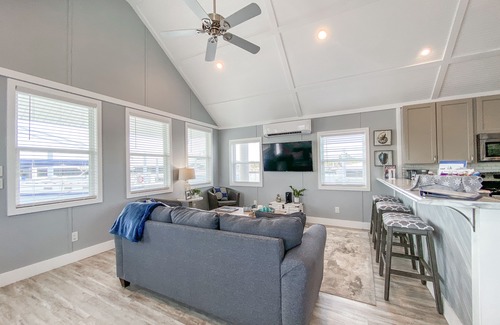 Please note that this Houseboat is located on the water in a marina, and you will be walking on docks that may include uneven footing. There are no railings on the front or back decks or along the docks. May not be suitable for young children, people with stability issues, or accessibility issues (i.e. wheelchair - no ramp, standard door widths throughout).