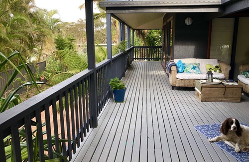 Pets are most welcome to stay on the verandah which can be closed with a lockable gate. Please ask us before bringing the pooch so that we can let you know which beaches to enjoy with them!!