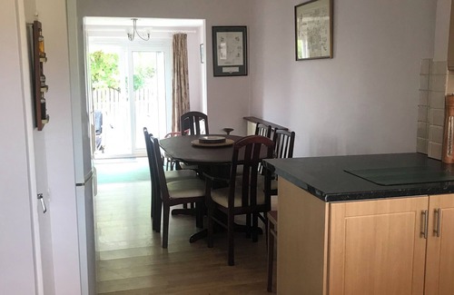 Beautiful 5 bed house set in a peaceful location on the outskirts of Taunton, Somerset. En-suite master bedroom with walk in shower and cozy king size bed. 2 more upstairs bedrooms and another bathroom with a bath finish the upstairs. Downstairs there are 2 more bedrooms, another bathroom with walk-in shower, a lounge with tv and a fully equipped kitchen/diner ideal for family meals. There is off-road parking for 4 cars and a decent size garden with seating area.