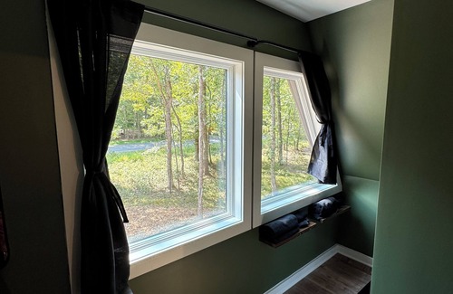 Nestled in Albrightsville, this delightful aframe offers a serene escape for guests. With 2 cozy bedrooms featuring a king and queen bed, along with 2 bathrooms equipped with a shower and bathtub, this quaint retreat is perfect for a relaxing getaway. The living room even has a comfy pullout sofa for additional sleeping space. Our place is equipped for both long or short stays to make your holiday one to remember. And the 28 foot custom window wall will leave you with everlasting memories!
