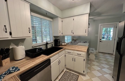 This newly renovated home is your ideal home base to explore Raleigh! Conveniently located 5 min from 540 and Capital Blvd, and only 2 minutes from the WRAL Soccer Park! Enjoy a well-equipped kitchen, dining area with coffee bar, quality bathroom amenities, high-speed fiber internet, plenty of free parking, 3 smart TVs, and washer/dryer. Relax outside on the deck with our fire pit, and enjoy the beautiful wooded lot. Dogs are welcome too, and we have a guest basket just for them!