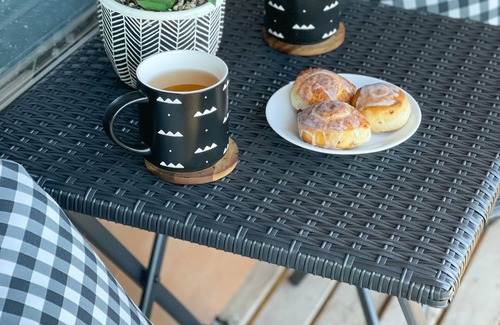 Prepare delicious meals in our remodeled, well-equipped kitchen. It comes stocked with small appliances, coffee, tea, spices, condiments, and cleaning supplies. We provide essentials like dish soap, dishwasher pods, trash bags, and paper towels to make your stay stress-free. Enjoy the convenience of two USB charging ports near the coffee machine.