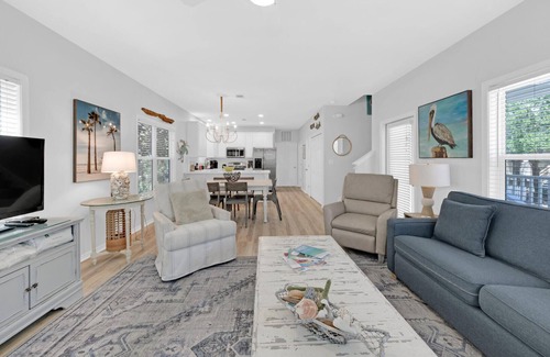 Pelican Paradise - An Old Florida Cottage in Beautiful Santa Rosa Beach. Located between Seaside and Destin in beautiful Santa Rosa Beach, Pelican Paradise is a4 bedroom plus loft, 3 bath home that is part of a small neighborhood of only 75 cottage style homes called Old Florida Village. A community pool directly behind the home makes keeping tabs on those loved ones especially convenient and beach access is a short stroll (approximately 500 yards).
