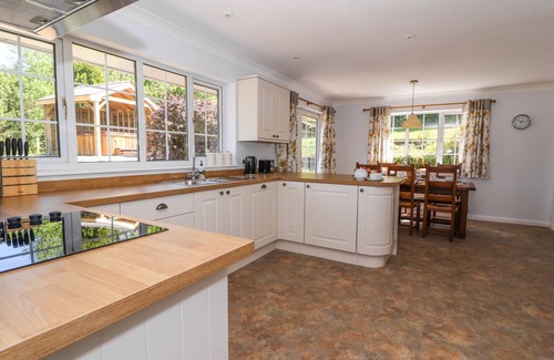 Pen Y Maes is a stunning red brick bungalow near the town of Builth Wells in Powys. It sleeps six people in three spacious bedrooms consisting of two king-size doubles, one with an en-suite shower room and one twin. there is a lovely kitchen with dining area, a utility and a sitting area. There is also a fabulous garden outside with a barbecue, patio furniture and hot tub. Pen Y Maes is ideally for a family or group of friends wishing to explore the beautiful Powys in Mid Wales.