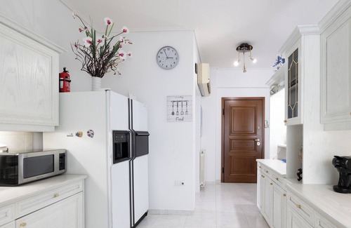 This exquisite penthouse is at beach front and at the same time in walking distance from Kalamata center and all the shops and services. Cross the street and on the other side awaits you the beautiful sand beach of Kalamata for a refreshing swim experience. The house itself is spacious and luxurious and offers all possible comforts. It is newly redecorated, offers air conditioning and parking possibility as well. Bedrooms, bathrooms, kitchen and living room offer cover your needs. Just enjoy.
