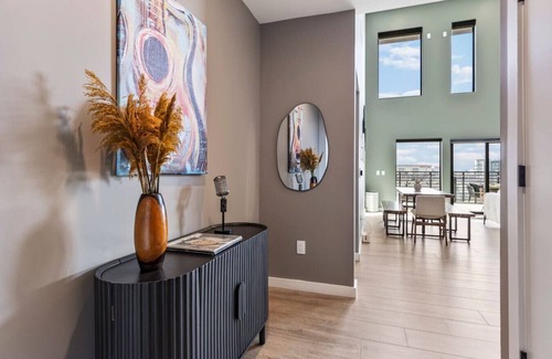 Experience luxury in the HYVE building. Spacious Penthouse condo w/ a City view in an unbeatable location - walk to Broadway and the Gulch for endless food & shopping. This upscale building has a pool with outdoor seating, cabanas, fire pit, gym + common areas to work from. Enjoy your coffee on our huge private corner patio. Only 0.5 mi to Broadway & 0.6 mi to the Gulch! Parking available in a garage connected to the building. Relax after exploring the city's best restaurants, bars & live music.