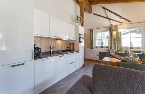 With high ceilings, a stylish interior and a great location near the winter sports area, this typical Austrian penthouse comfortably accommodates a family. There are magical mountain views from the balcony and the living room with modern open-plan kitchen is ideal for socialising. Accessible by lift, this fine residence offers access to a shared ski storage room and relaxation area with sauna
