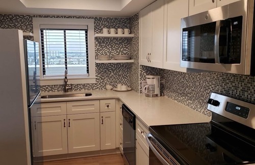 This newly renovated and redecorated freshly painted condo features an amazing 8th flloor Penthouse ocean view, a large great room and 2 comfortable bedrooms that are sure to help you embrace the laid-back coastal lifestyle. The welcoming great room offers plenty of natural light, brand new electronic leather couch and reclinner chair with wireless phone charging, and a large 52" flat screen for binging on your favorite TV show. Cook up your favorite meal in the fully equipped kitchen with all new appliances. There is plenty of seating in the adjoining dining area and additional seating at the kitchen counter if needed.