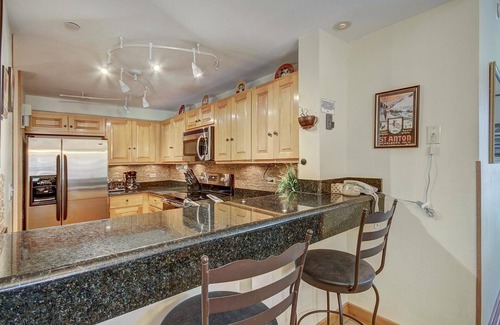 This 1,200 sq. ft. luxurious penthouse condo has recently been renovated in an elegant mountain lodge style. Beautiful stone gas fireplace, alder wood crown molding, and spectacular views of the mountains from this 7th floor corner unit, makes this an ideal place to relax after a hard day of exploring. Open and bright, the condo receives plenty of sun throughout the day.