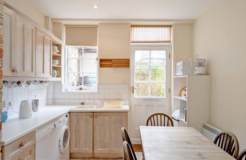 On the ground floor you will find the good sized living room with open fire, cloakroom with downstairs loo and a twin bedroom. Upstairs are two good sized bedrooms, one with a king sized bed, the other twin, and a bathroom with shower over bath, loo and basin. The kitchen is on the ground floor and offers everything you will need to comfortably self cater for your stay with dishwasher, cooker, fridge, freezer, microwave, toaster and cafetiere. The property also has two highchairs, two travel cots and stairgates. The garden is south facing with a patio, garden table and barbecue and is approached by a path which follows through to a further property.