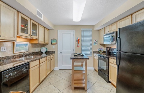 Upstairs, you'll find three luxuriously appointed bedrooms, each featuring premium mattresses, plush bedding, and high-quality linens for a restful night's sleep. The master bath impresses with ample counter space and soft, oversized cotton towels, perfect after a day at the beach. The gourmet kitchen comes fully equipped with everything needed to prepare meals, including a dining table that seats eight and a breakfast table for two on the patio. With a queen bed in each of the first two bedrooms and a queen, twin bunk, and trundle in the third, this unit comfortably accommodates families or groups. Book your dream vacation at Perdido Towers East 103 today!