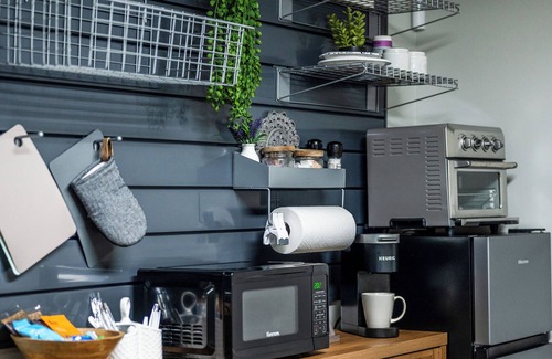 - Nicely appointed kitchenette w/ mini fridge/freezer, microwave, keurig, and air fryer