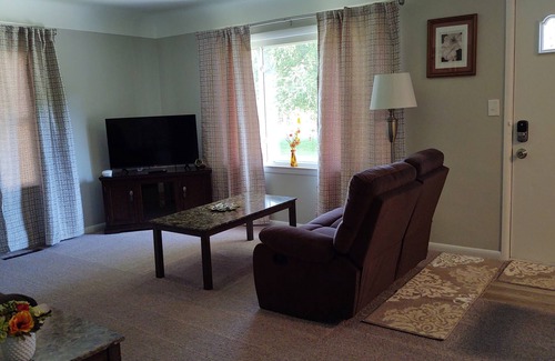 This just renovated, cute and cozy home has 3 bedrooms with a queen size bed and television in each. The excellent WiFi allows for Netflix to stream on the bedroom as well as living room TV's while still allowing you to use the guest network for your laptop and/or phone. Being just outside town allows for a peaceful getaway from all the fun and allows you to catch your breath and recharge. You'll find everything you need to enjoy a meal or just kick back and relax.