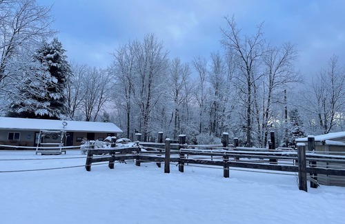 The Maple is next to the Cedar Cabin & close to 4 of our five campsites so it makes for great community or groups who have multiple, different lodging needs. There is ample parking for horse trailers, trailers for ATV's & UTV's, boats, and multiple vehicles. If you choose to bring your horse to the Ranch it has horse pens right out your front door for your horse to stay in. The visiting horse barn is a short walk to the top of the Ranch should you prefer a stall. We do not allow stallions on the Ranch. Horse trail passes are not required in the National Forest in Oconto County.