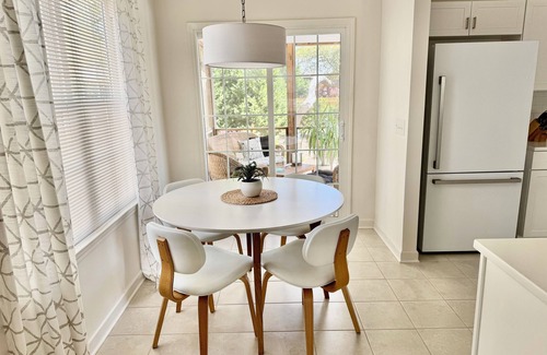 In the spotless kitchen, you will find updated lighting and a ceramic tiled floor. The cupboards are packed full of dishes, cookware, small appliances, and glasses. As we love to cook you will find everything is provided for you to cook delicious vacation meals. Alternatively, a list of my favorite restaurants and menus are provided if you decide to not cook during your stay.