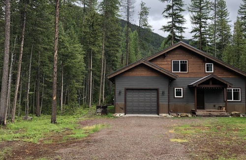 Beautiful newly constructed home on a quiet, wooded half acre perfectly located between West Glacier and East Glacier. Four bedrooms and 3 bathrooms will accommodate 8-10 people comfortably. Large living room, family room, and spacious kitchen island for dining. New appliances and kitchen is fully stocked with dishes, pots/pans, utensils, spices, condiments and coffee. There is also an outdoor grill for making meals at home while enjoying the beautiful views. Convenient public river access nearby, upstream and downstream and just a few miles away is the historic Izack Walton Inn, perfect for cross country skiing! Hiking access to National Forest Service, Great Bear Wilderness and Glacier Park trails are all within miles! Listen to the river as you enjoy a campfire in the backyard, just off the covered back porch! Perfect for year round get-aways. Restaurants, shopping and recreation are all just a close drive away!