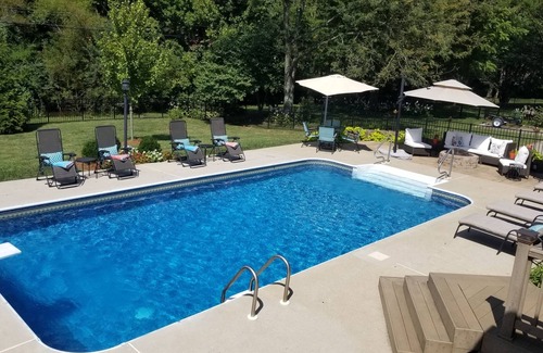 Beautiful home in a great location. Easy access to major highways. Less than 10 minutes to Bluegrass Airport, Keeneland, Restaurants, Downtown & Shopping. Large fenced yard with heated pool, (extra charge if guest request the pool to be heated) fire pit and outdoor area for entertaining and relaxing. Three bedrooms and three full baths. Open concept, fully equiped kitchen with two dining areas and wet bar. Fireplaces in familly room and master bedroom. Book now for your next trip to the Lexington area.