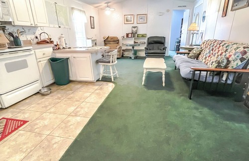 Your perfect get away cabin awaits in the heart of the fishing village of Suwannee, FL, where the Suwannee River meets the Gulf of Mexico. Come enjoy all Suwannee has to offer in this cozy single wide mobile which is has all the comforts of home. Enjoy the outdoor lifestyle with plenty of spaces to gather or relax. Although the entire home is lifted, you will have the convenience of an elevator or stairs. The entire home is wrapped in a porch that is partially enclosed on one side, making a nice place to kick back and read a book and enjoy a drink. The entire area under the home is concrete, and allows for a great cookout and gathering spot. There is even your own fish cleaning station, for prepping your catch after a day on the water.