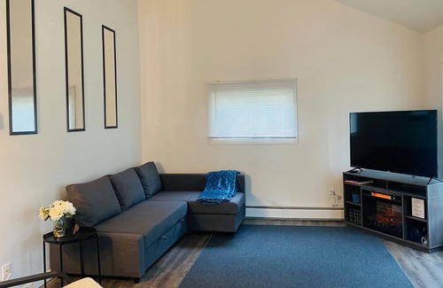Enter into the one-level home to the open concept living space. Find a fully stocked kitchen with all your cooking essentials, then gather around our table for four to enjoy your meal or play one of the board games!