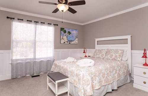 This home is bright and cheery and offers 2 bedrooms and 1.5 bathrooms. It will sleep 6. One bedroom offers a Queen bed, the other offers 2 Twin beds and a sleeper sofa in living room. The kitchen is well stocked for all your kitchen needs. It also comes with a washer and dryer.