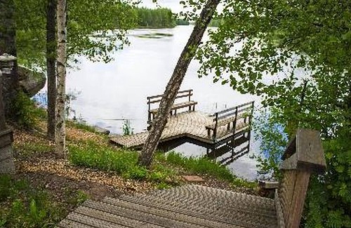 20 km north of Kotka, River Kymijoki 6 m, deep, hard, rock bottom, own boat. Log cottage 2006, living room/kitchen, bedroom double bed, bedroom 2 beds, sleeping loft 3 extra beds, sauna (electric stove), washroom, dressing room, open porch. High standard chalet on bank of River Kymijoki. Air source heat pump with cooling / heating function. Large terrace and peacful and spacious yard area. A four-seat swing in the yard. Shore suitable only for experienced swimmers, as river current close to shore.