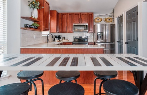 Welcome to Stay Awhile! This fun & eclectic home is located in an exceptionally safe neighborhood, and no more than a 30 minute drive to almost anywhere in St. Louis. Perfect for families, groups & furry friends alike. Recently updated-everything is new from the super comfy memory foam beds to the Keurig. If you are looking for a relaxing & fun stay, filled with amenities, we have you covered! We have even incorporated an “eye spy” game into the design of the house