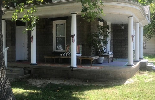 150 year old home with all the updates. This is the first floor apartment. If you are bringing multiple pets please reach out to us first. Stocked kitchen with appliances. wifi, tv, games, and a huge yard for kids.
