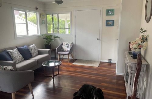 Wildlife abounds here, with resident bush turkeys, tree frogs and Kookaburras often seen around, along with vibrant bird life that grace the skies and waters, where you can also spot turtles and sting rays in the waters. The property is pet-friendly, providing plenty of space for your furry companions to roam freely. The house is surrounded by fruit trees.