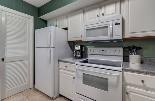 As you enter the foyer you will be swept away by the understated classic charm of this condo. The first space you encounter is the fully stocked kitchen with an adjacent laundry room for convenience. Whether you're making snacks to take to the beach or preparing a full meal, you'll find everything you need! The kitchen overlooks the dining room with a light oak table and six rush seat dining chairs.