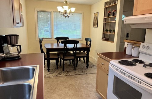 There is a shared utility room attached to your unit which holds modern front-loading washer and dryer, iron w/ ironing board, and extra cleaning supplies you can use. Laundry is available to those staying one week or longer, or by request as it's the landlord's only access to the backyard to let the dog out. You have access to the yard through the French doors in the bedroom.